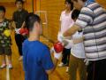 多分ほとんどの人が初めてグローブを着けたのではないでしょうか?ちょっと疲れてきていた表情が一変、楽しそうに眼を輝かせていました。ここでは「ケガをしないように」と言うことだけに気をつけて、好きなように行ってもらいました。