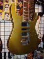 この製作中のギターは、カラーが『金〜銀のマジョーラ』と他には無い珍しい仕上がりで、しかもそれが2本目なんです!スポットを浴びるとすごくきれいに輝き、見とれてしまいますよ。(でも普通に見ると緑色と間違われてしまいます)近々動画でアップする予定ですので、ご期待ください。