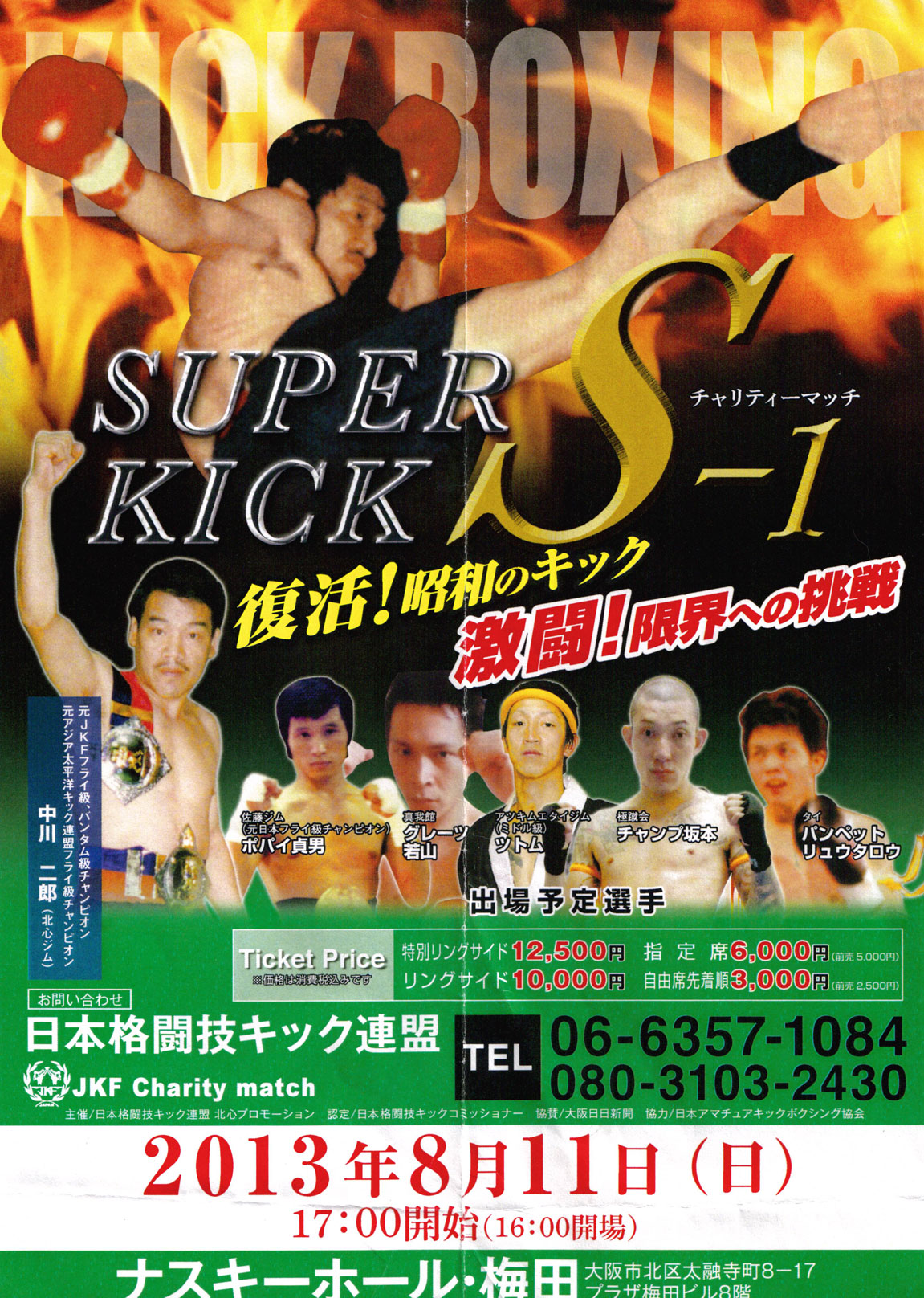 2013年8月11日(日)ナスキーホール・梅田にてSUPER KICK S-1が開催されます。