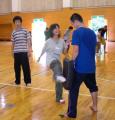 ミドルキックをやってみたのですが、さすがにこれは難しかったみたいでしたね。でも誰一人こけなかったのは力まずに蹴れた証拠です。大抵、極蹴会に入門してすぐにこけるものです。(こけたことのある選手はコメントに書き込むように!)そんな中、施設の職員の方々に上手にカッコ良く蹴れている人が3人ほどいました。しかも一人は女性でした。ぜひ試合に行きましょう!!