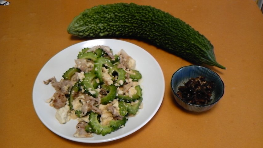 写真は ただ今作りましたゴーヤーチャンプルーと